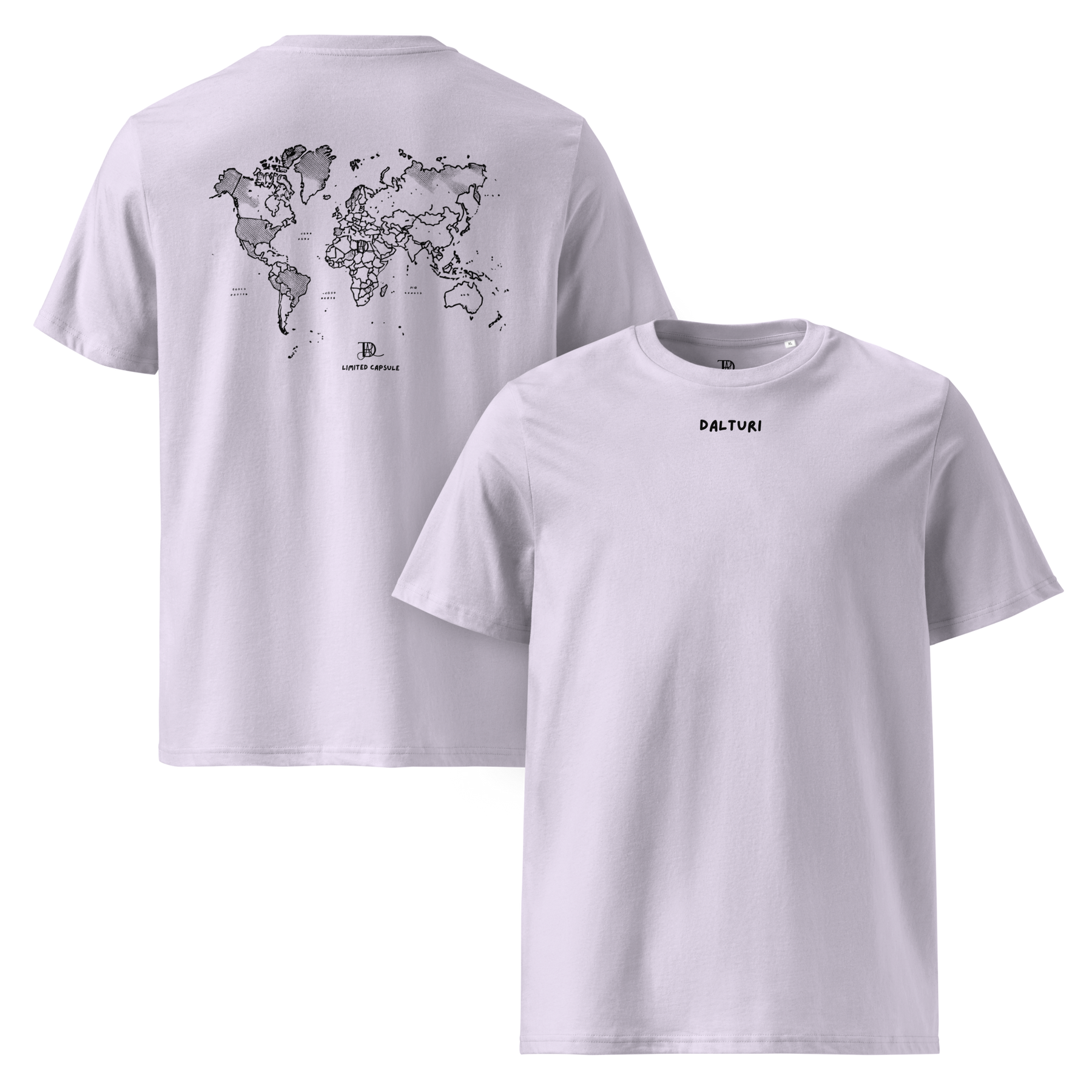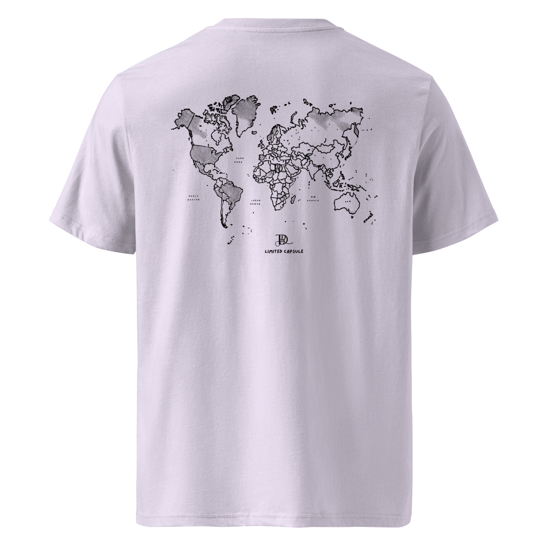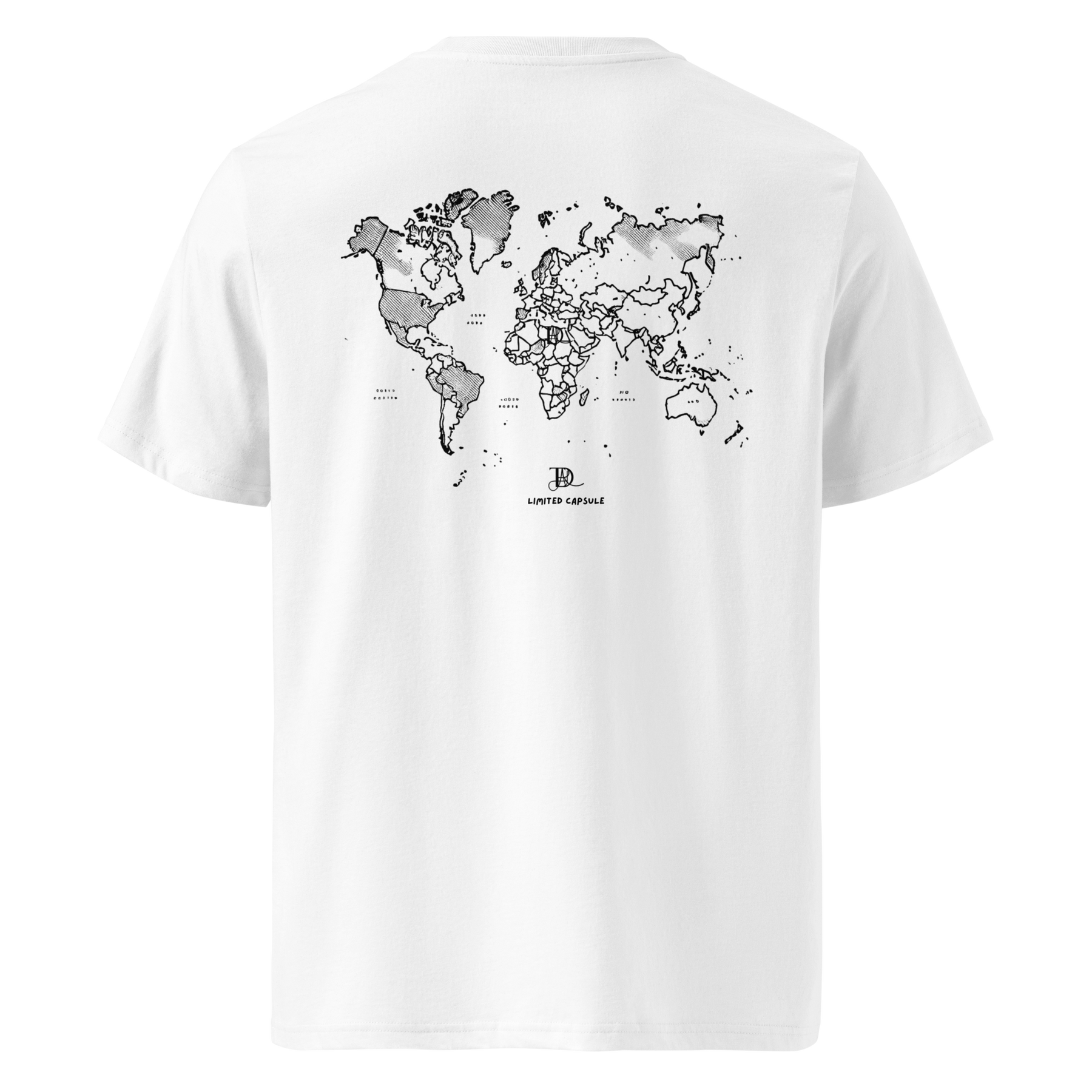 • 100% organic ring-spun cotton • Fabric weight: 5.3 oz/yd² (180 g/m²) • Single jersey • Medium fit • Set-in sleeves • 1 × 1 rib at collar • Wide double-needle topstitch on the sleeves and bottom hems • Self-fabric neck tape (inside, back of the neck)